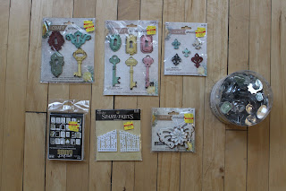 I had a chance to browse the clearance section at Hobby Lobby and I found some fantastic art embellishments! I love clearance sales!! I got $60 worth of goodness for $20! I am excited to add some of this goodness to my mixed media projects! Here is what I came home with:
